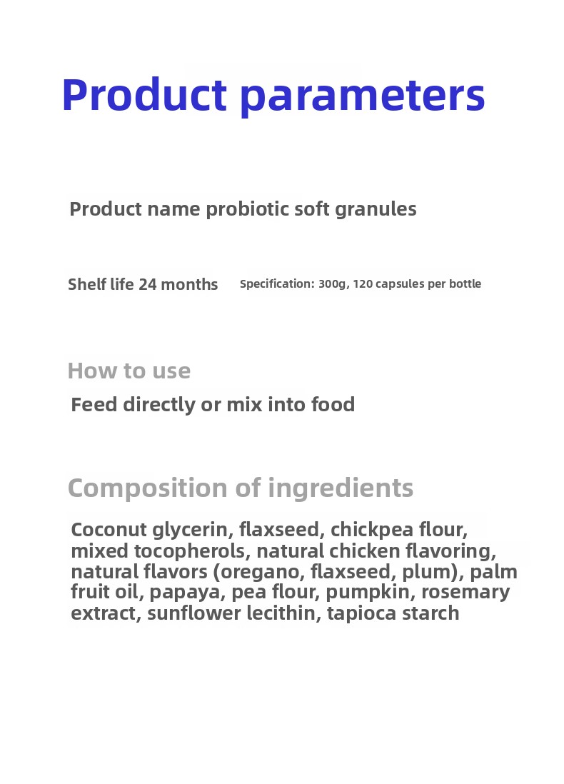 Probiotic Soft Granules: Supports digestive health and immunity for pets